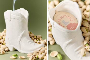 From Paddywax, the Nashville Boot candle in Smoked Pistachio: "These 6 oz Nashville inspired cowboy boot candles come in a speckled glaze or a matte texture in three colors, each! Filled with western inspired fragrances to set the tone. Repurpose as a pencil cup or floral vase to add a little Tennessee charm to your home". 170g for $32, at Paddywax or Anthropologie.